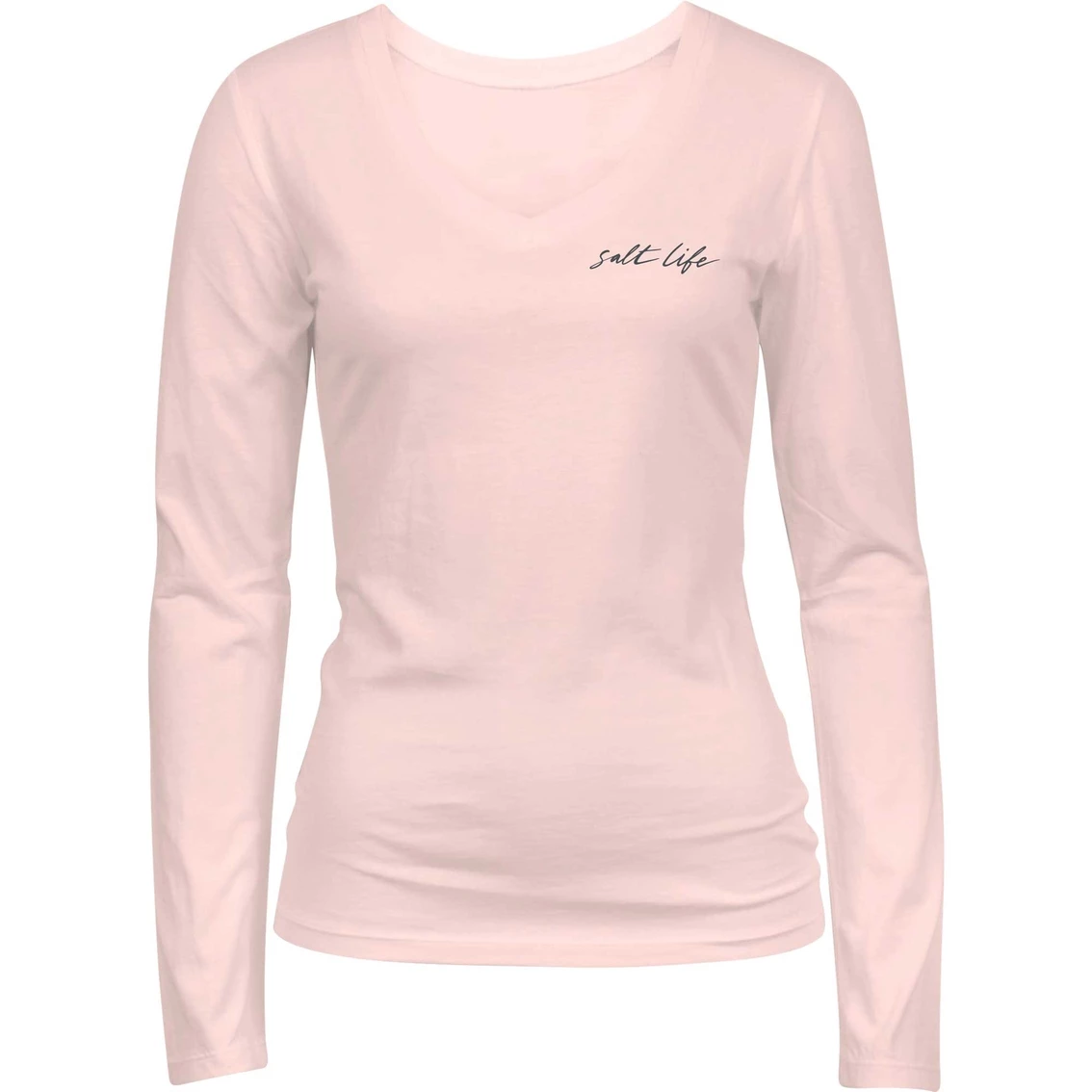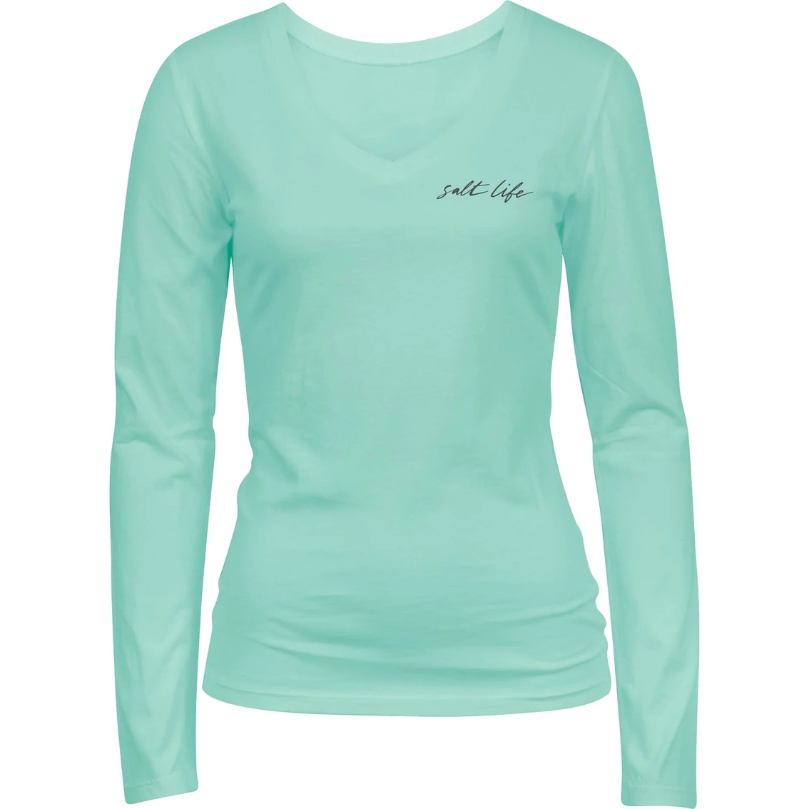 Hang loose with this comfortable, stylish women’s tee from Salt Life. The Scenic Turtle long sleeve V-neck tee is a great addition to your wardrobe. Featuring a front and back screenprint and made with 100% cotton 40’s preshrunk ringspun jersey, this tee provides a soft to the touch feel and comfort fit. Available in multiple colors, this long sleeve tee is perfect for casual wear and layering. Style: SLJ10698316.
