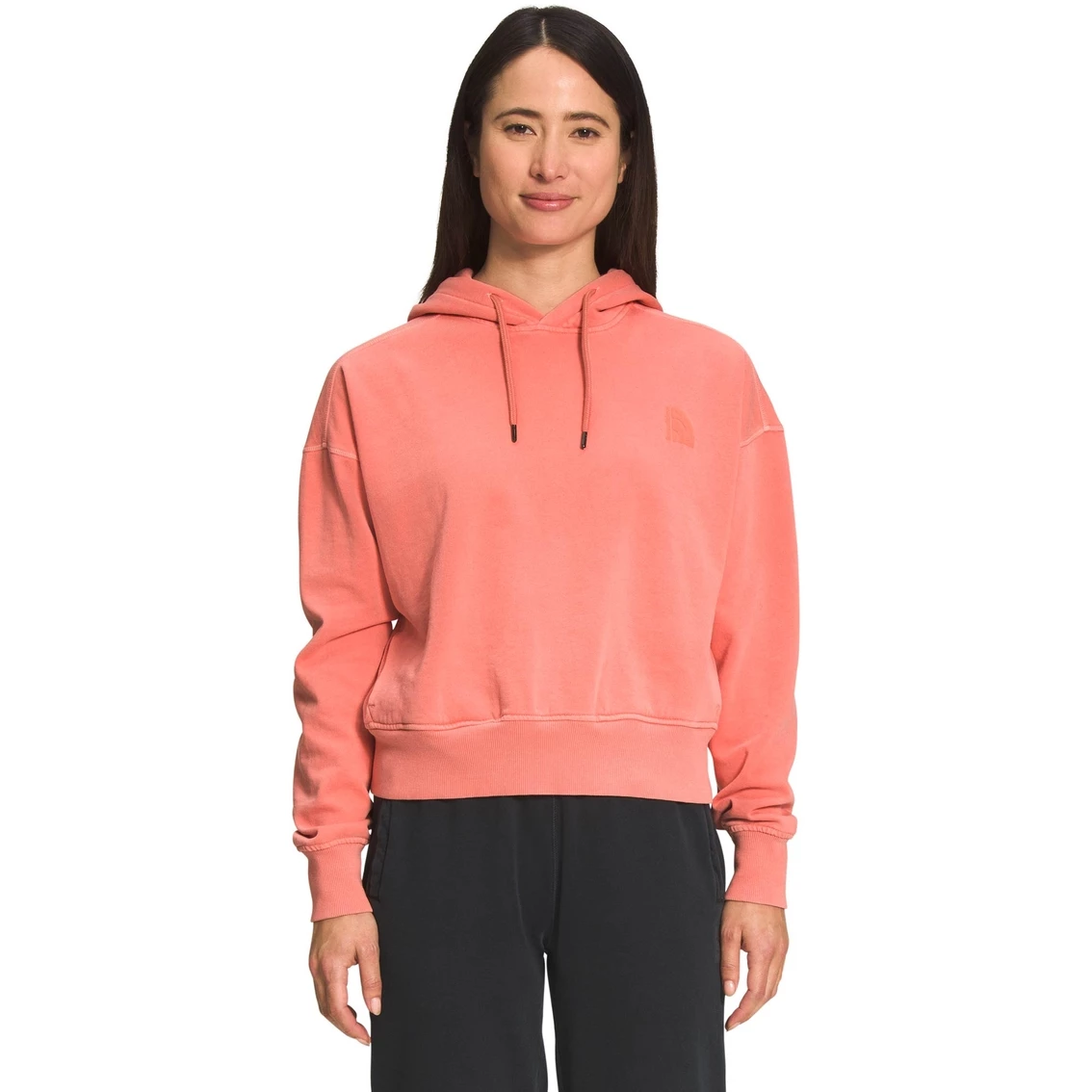 The vintage look and soft texture of The North Face Women’s Garment Dye Hoodie make it a favorite for colder weather at any time of year. This relaxed-fit sweater is slightly cropped, giving it a boxy and modern style. Style: NF0A7UOR.