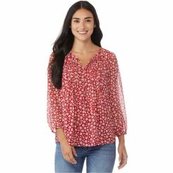 The perfect woven blouse for transitional weather, this long sleeve top from Tommy Hilfiger is accented with flattering pintuck details. Feminine floral print adds fun color to this top. Style: J2XMH178.