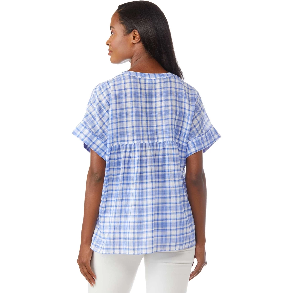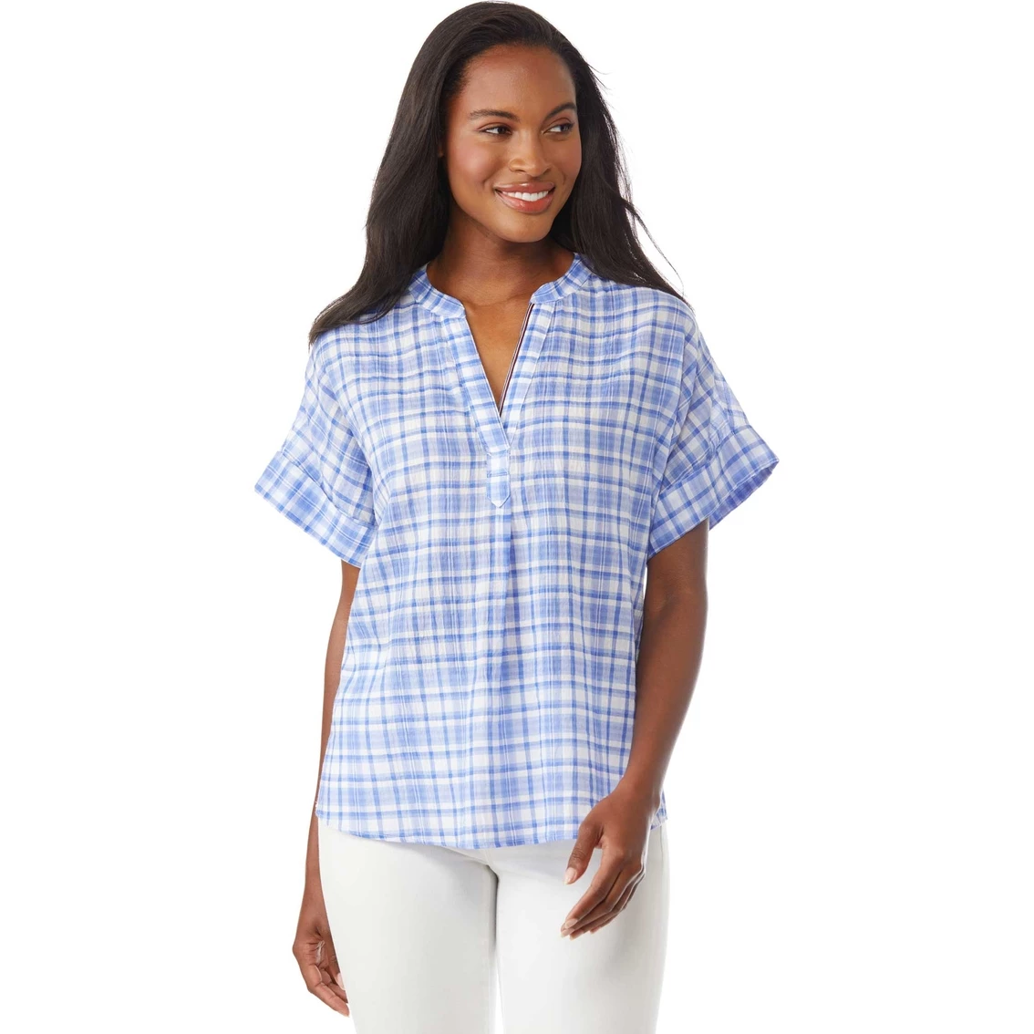 Tommy Hilfiger women’s shirt. The popover shirt gets a refresh, now in a bold plaid – pair it with jeans for a low-key look. Style: J2EMP096467.