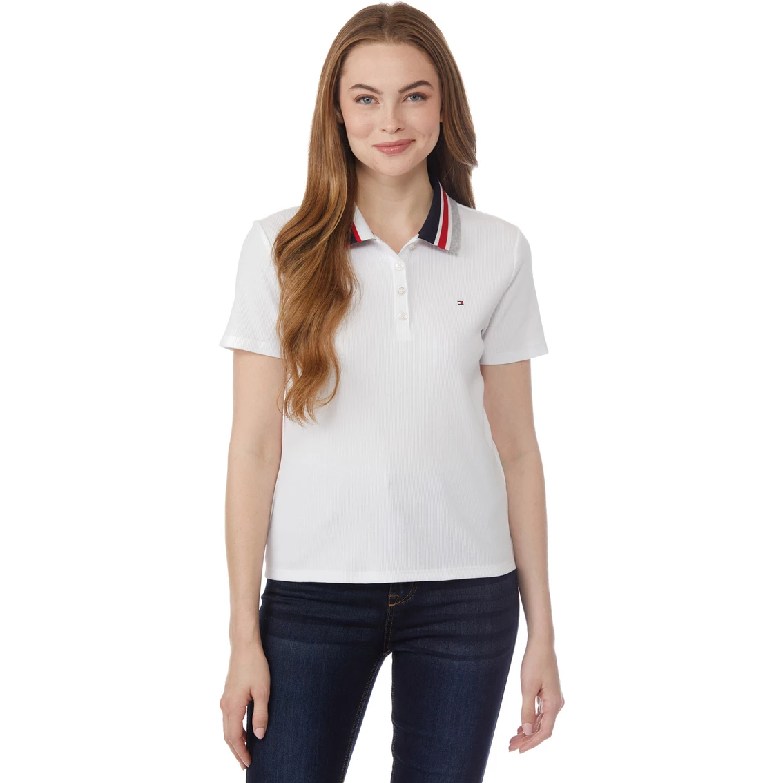 Featured in a ribbed style, this short sleeve polo from Tommy Hilfiger rounds out your everyday wardrobe. Model: J2FH0469174.