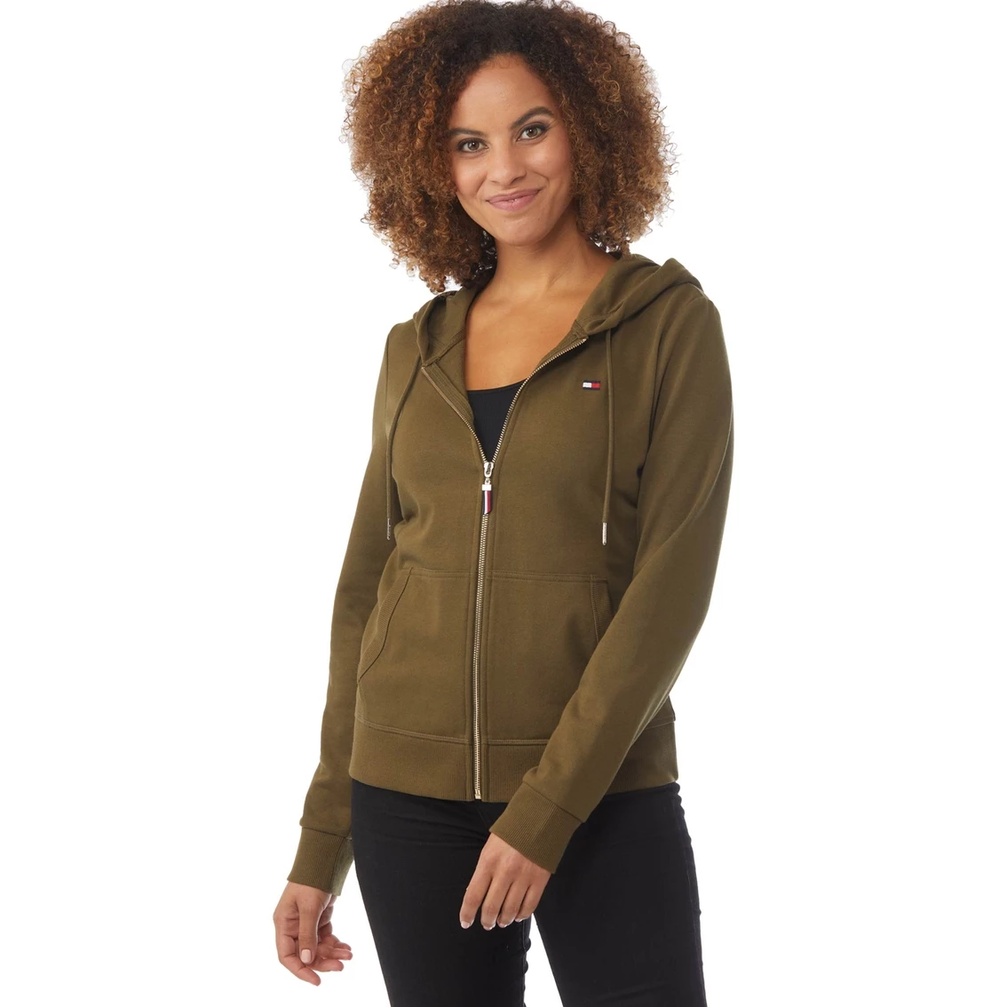 Everyone needs a go to zip front hoodie. This Tommy Hilfiger long sleeve knit style features pockets, a drawstring hood and embroidered logo flag at the chest. Style: J2HE0216337.