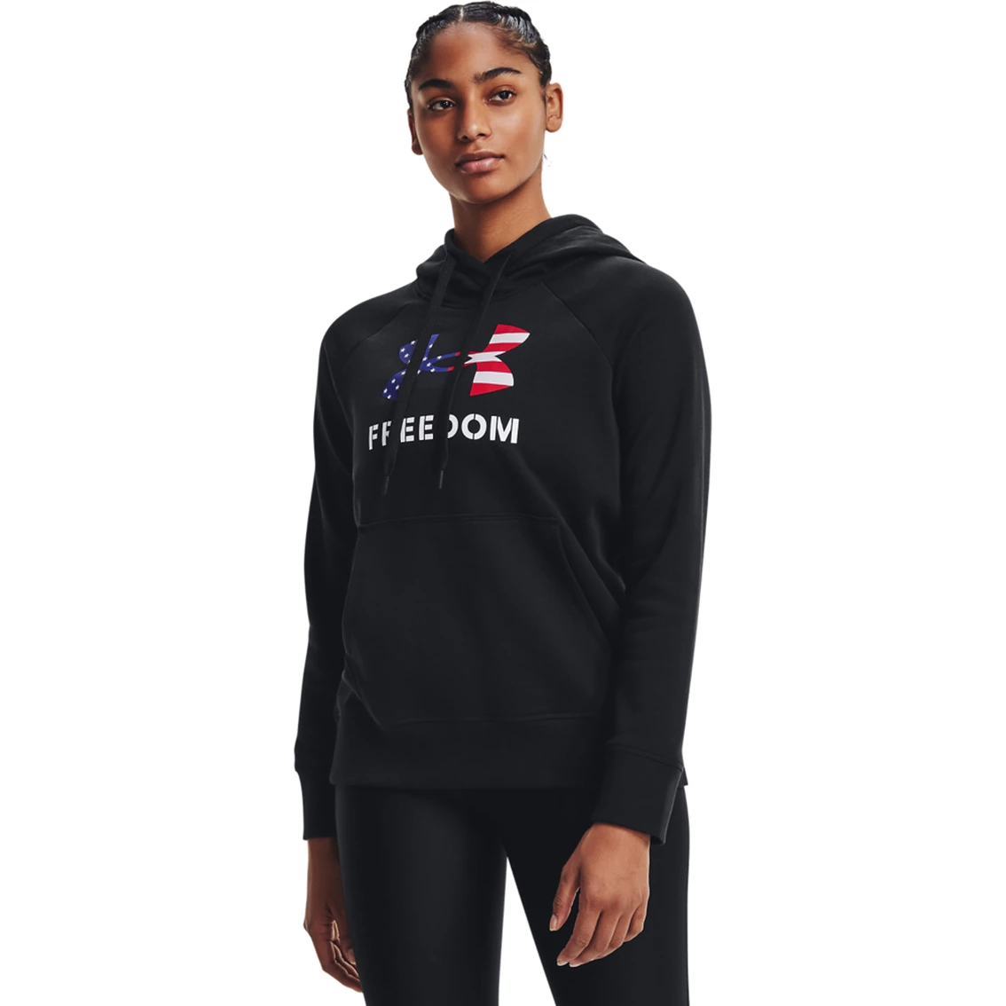 This Under Armour Freedom Rival Hoodie is made of soft, mid-weight performance cotton construction with brushed interior for extra warmth. It features a front kangaroo pocket and ribbed cuffs and bottom hem. Style: 1370026.