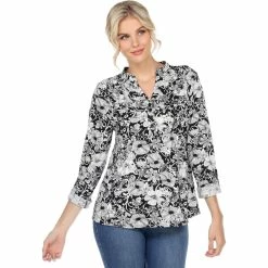 Indulge in this relaxed lightweight tunic top for a classic modern look from White Mark. This long sleeve trendy floral print top features an open mandarin collar with a V-neck and button closure at chest, functional pockets at bust, pintuck pleats at front, yoke pleating back, and a rolled cuff with button tag closure. Flow free in this polyester and spandex blended garment with great stretch for unparalleled comfort. Style: 1346F410.