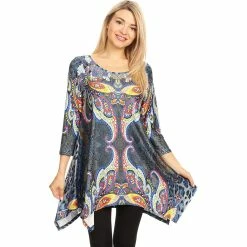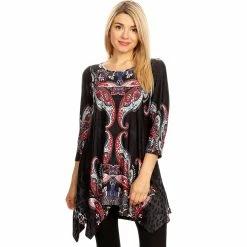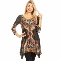 This flattering tunic top from White Mark drapes stunningly on your body. With a bold, flirty print and three-quarter-length sleeves, you are sure to feel comfortable and look fashionable. Style: 1300.