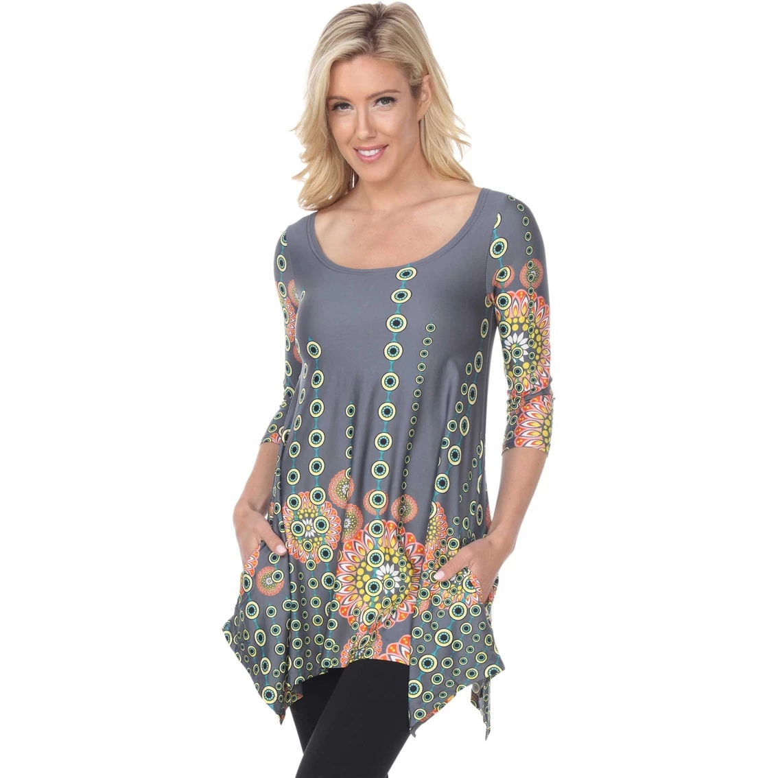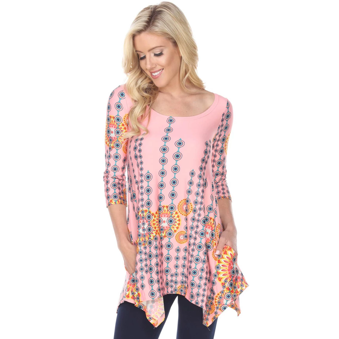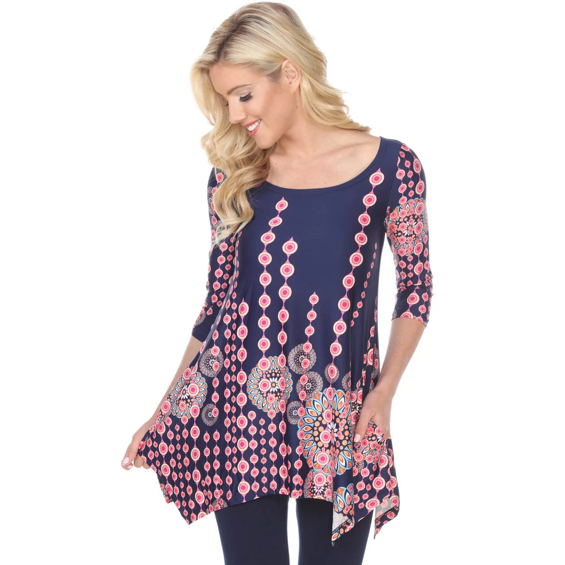 This flattering tunic from White Mark drapes stunningly on your body. With a bold, flirty print and 3/4 sleeves, you are sure to feel comfortable and look stylish in the White Mark Rella Printed Tunic Top. Style: 1301R20.