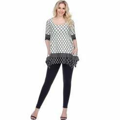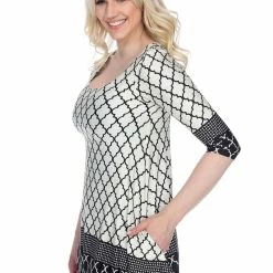 This flattering tunic from White Mark drapes stunningly on your body. With a bold, flirty print and 3/4 sleeves, and side pockets you are sure to feel comfortable and look stylish. Style: 1301A100.