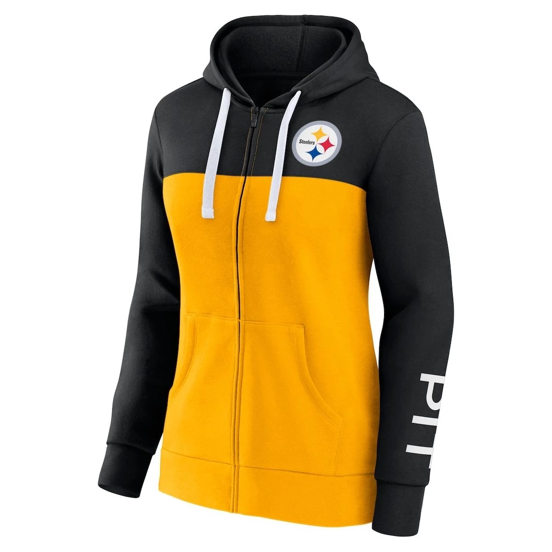 - Be ready to cheer on the Pittsburgh Steelers comfortably when the temperature starts to drop with this Take The Field Color Block full-zip hoodie from Fanatics Branded. The combination of iconic team colors and graphics adds a vibrant layer that you’ll desire on game day. Fleece lining and comfy cotton fabric are sure to keep you warm and snug while you cheer the Pittsburgh Steelers to victory.