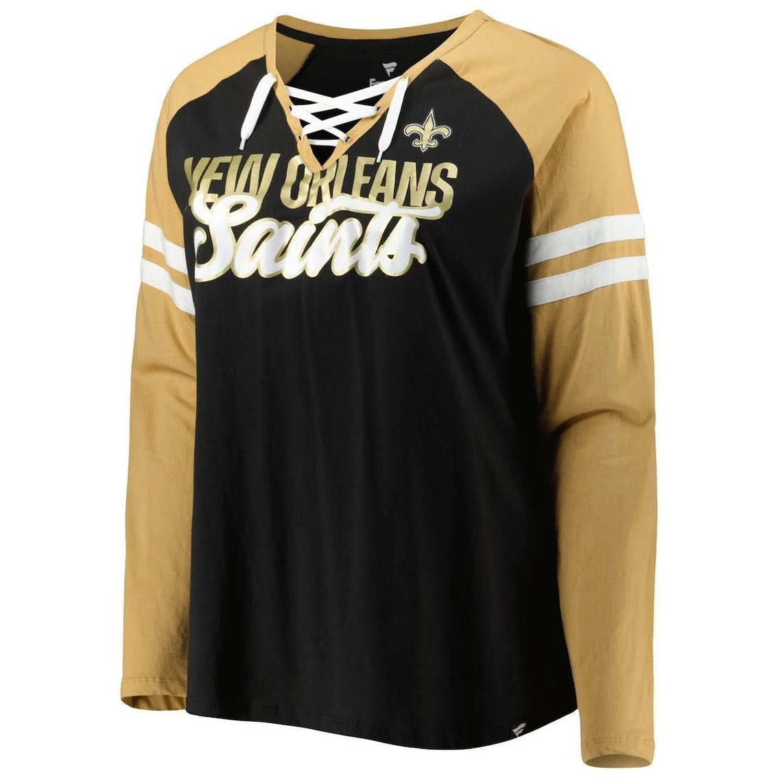Be the first to review “Cheap π Women's Fanatics Branded Black/Vegas Gold New Orleans Saints Plus Size True To Form Lace-Up V-Neck Raglan Long Sleeve T-Shirt π” Cancel reply