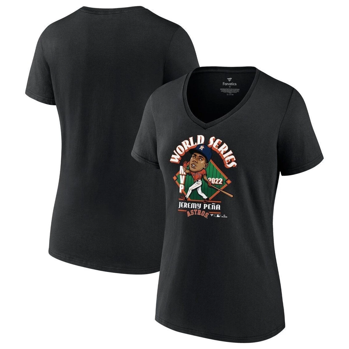 - With Jeremy Pea on the field, the Houston Astros made all the right moves to become the World Series Champions! Celebrate this victorious moment and Jeremy Pea’s stellar performance by grabbing this 2022 World Series Champions MVP Plus Size Name & Number T-Shirt from Fanatics Branded. It features crisp graphics to commemorate this incredible postseason run and let everyone know that your team reigns supreme.