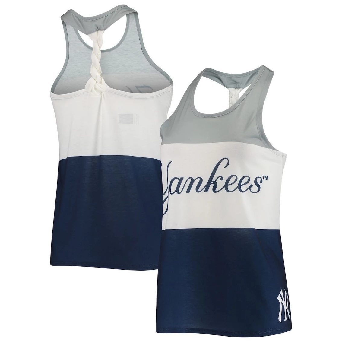 - Represent your New York Yankees spirit on any sunny day with this Twist Back tank top. This FOCO scoop neck top includes sublimated New York Yankees graphics across the chest, so your fandom will never be mistaken. Pair this unique braided racerback tank with your favorite shorts and let your team loyalty shine bright.