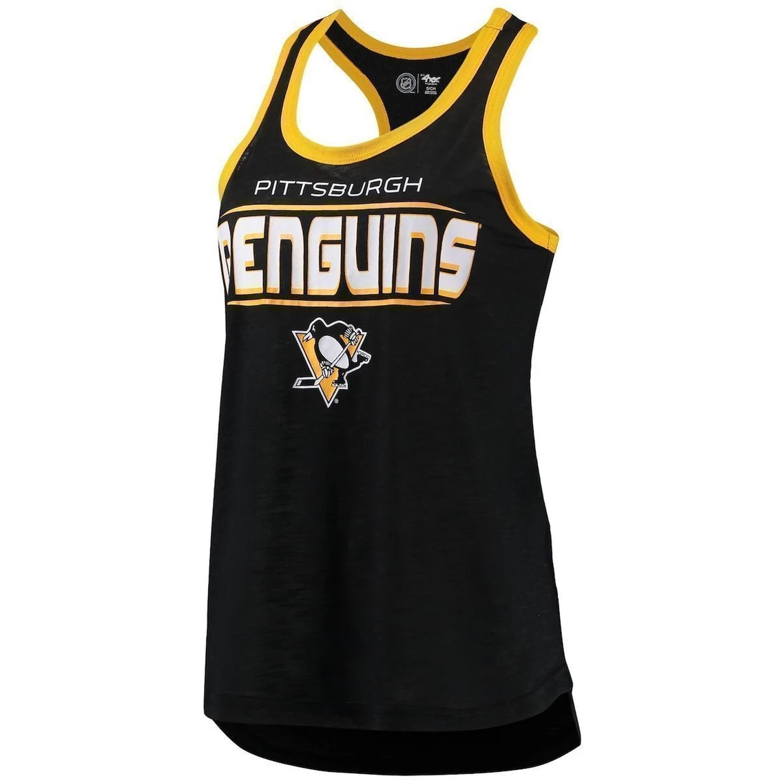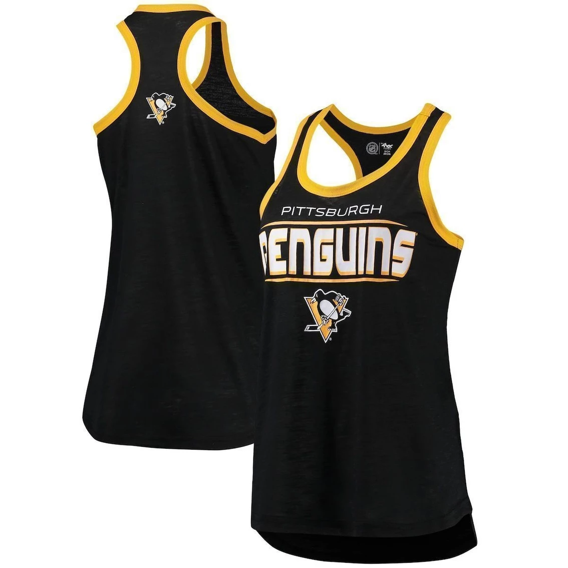- Put this trendy Showdown tank top from G-III Sports by Carl Banks in your rotation of Pittsburgh Penguins gear. Featuring a racerback cut, this top features a vibrant Pittsburgh Penguins design with contrast-color trimming for a touch of charm. Slub fabric gives you a more translucent look.