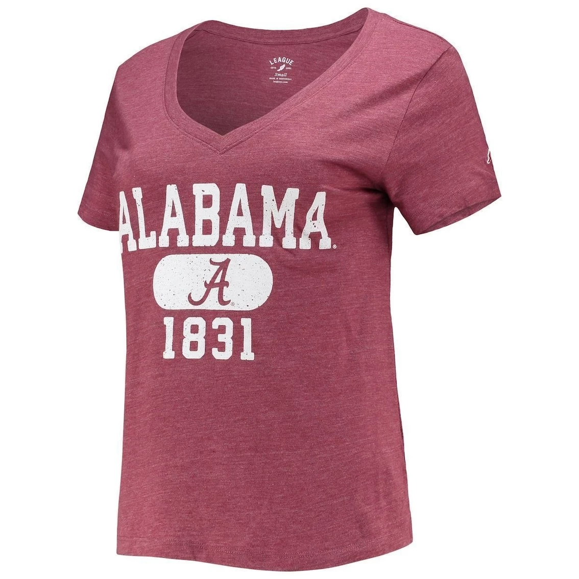 - Pick up your new favorite everyday Alabama Crimson Tide top with this Intramural V-neck T-shirt from League Collegiate Wear. Its boyfriend fit creates a looser look for added appeal, and the tri-blend material feels super soft. Alabama Crimson Tide graphics printed in a vintage design are the perfect finishing touch to this heathered tee.