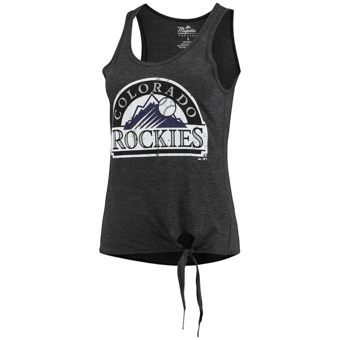 - You’re the biggest Colorado Rockies fan, and you want to show your support even on hot days. Now you can look and feel cool with this Majestic Threads scoop neck racerback side tie tri-blend tank top. Whether you’re at the ballpark or in the backyard, the stylish side tie and distressed graphics will help you stand out the next time you’re watching the Colorado Rockies win.