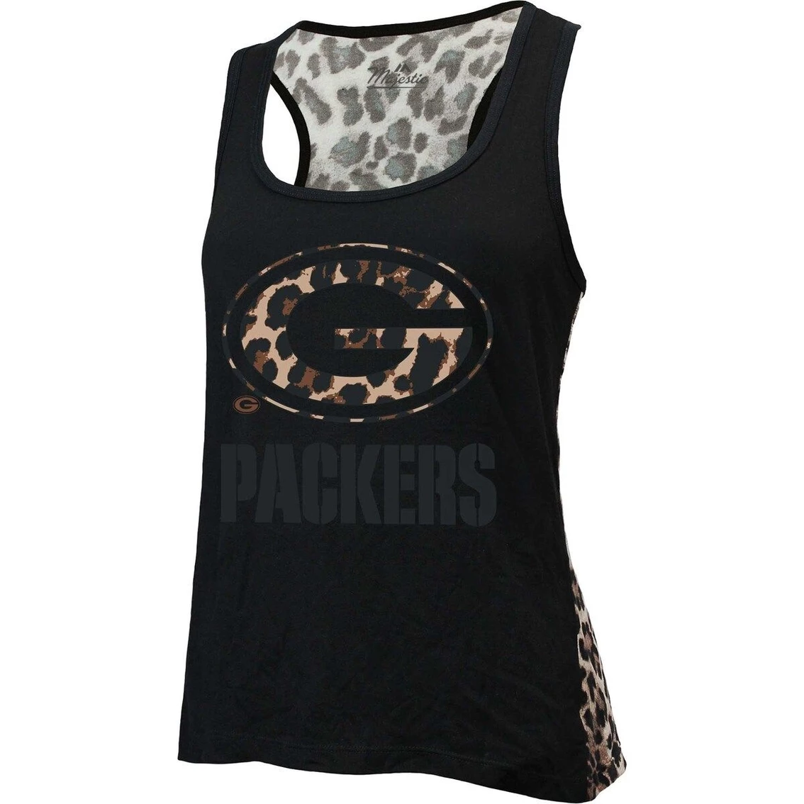 - Take your team spirit to the wild side with this Green Bay Packers tank top from Majestic Threads. It features the Green Bay Packers logo in a leopard pattern that also covers the back for a trendy look. Additionally, the blended fabric stretches some for a more comfortable fit.