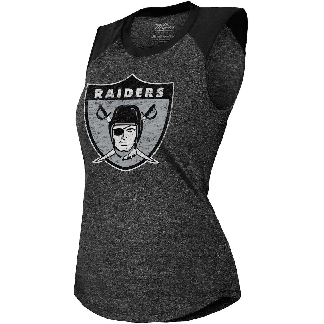 - You’ve worked hard to get to where you are, but every long hour at the gym was worth it. Show off your progress by sporting this bold Las Vegas Raiders Retro tri-blend raglan muscle tank top from Majestic Threads. Its large team graphics will set you apart as a dedicated fan whether you’re in the middle of a tough workout or cheering at the Las Vegas Raiders game.