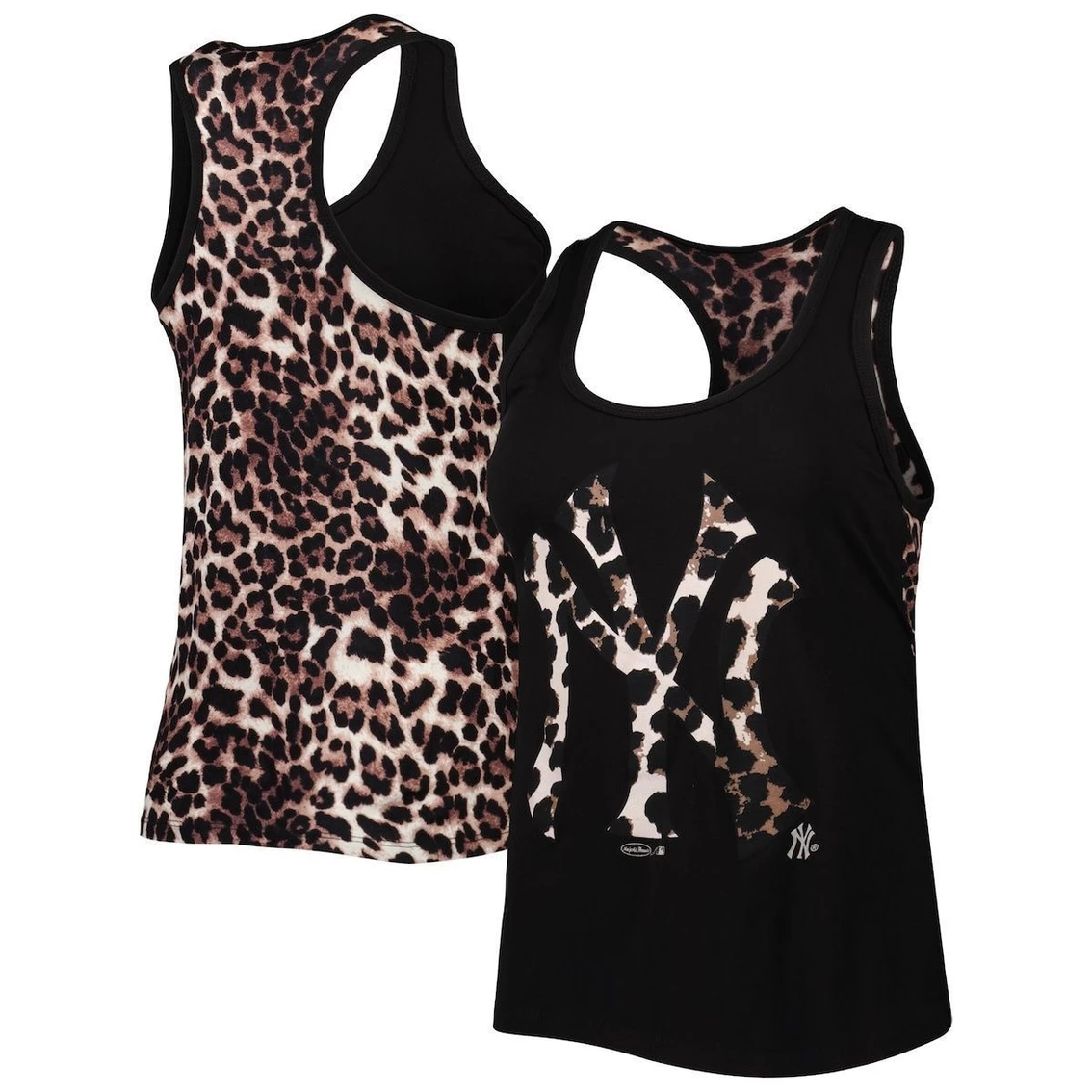 - Take your team spirit to the wild side with this New York Yankees tank top from Majestic Threads. It features the New York Yankees logo in a leopard pattern that also covers the back for a trendy look. Additionally, the blended fabric stretches some for a more comfortable fit.