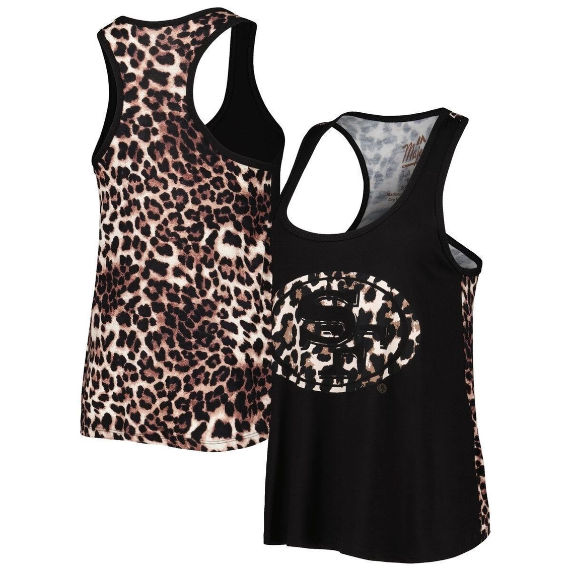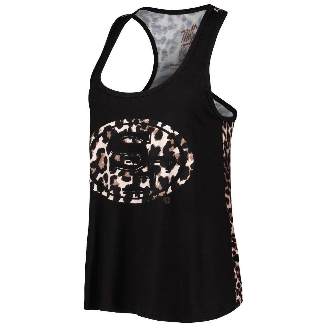- Take your team spirit to the wild side with this San Francisco 49ers tank top from Majestic Threads. It features the San Francisco 49ers logo in a leopard pattern that also covers the back for a trendy look. Additionally, the blended fabric stretches some for a more comfortable fit.