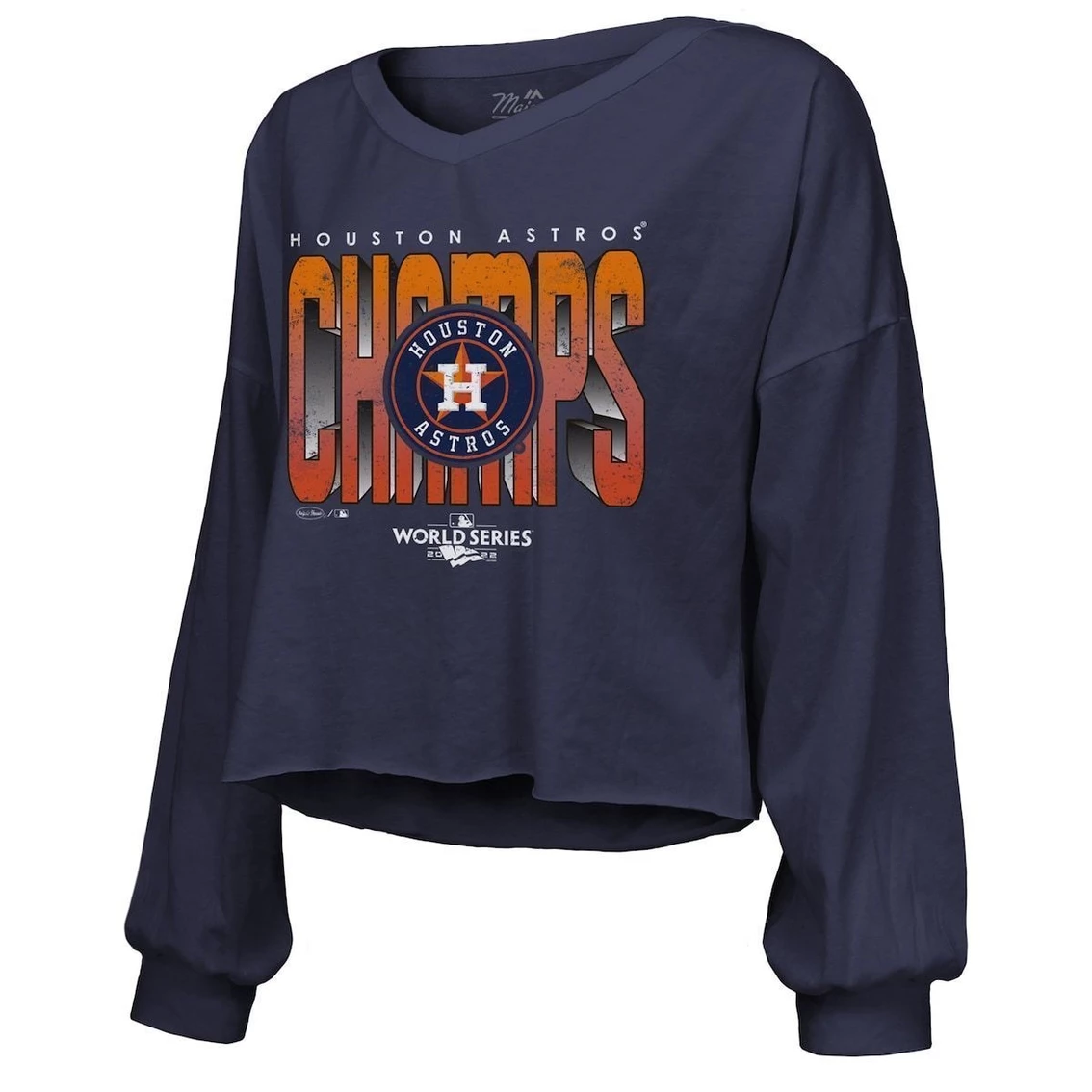- With every pitch, hit and play, the Houston Astros made all the right moves to become the 2022 World Series Champions! Celebrate this victorious moment in Houston Astros history by grabbing this Dime Crop Long Sleeve V-Neck T-Shirt from Majestic Threads. It features crisp graphics to commemorate this incredible postseason run and let everyone know that your team reigns supreme.