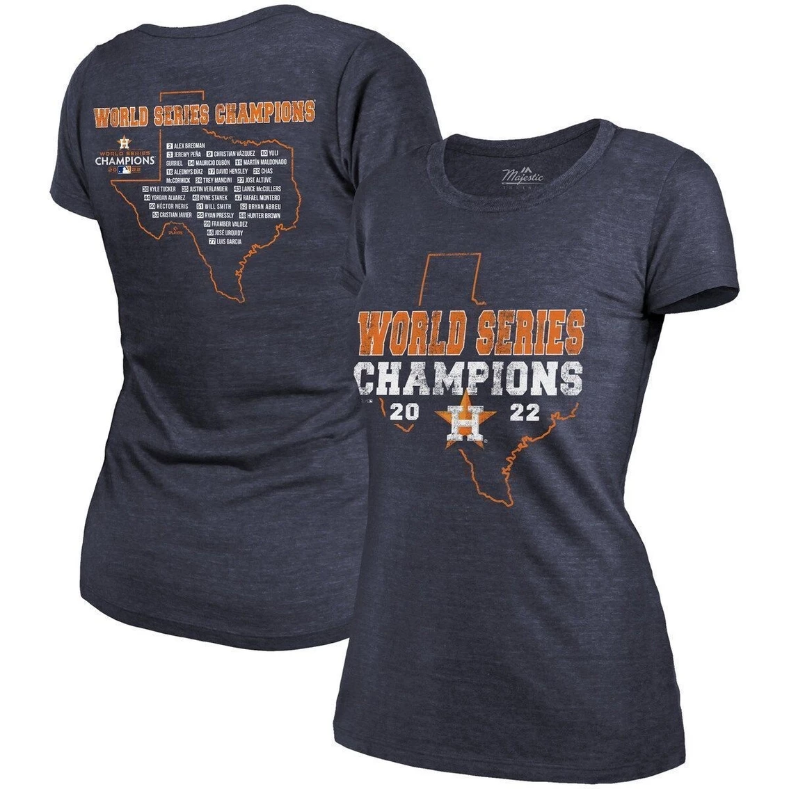 - With every pitch, hit and play, the Houston Astros made all the right moves to become the 2022 World Series Champions! Celebrate this victorious moment in Houston Astros history by grabbing this Over The Wall Roster Tri-Blend T-Shirt from Majestic Threads. It features crisp graphics to commemorate this incredible postseason run and let everyone know that your team reigns supreme.