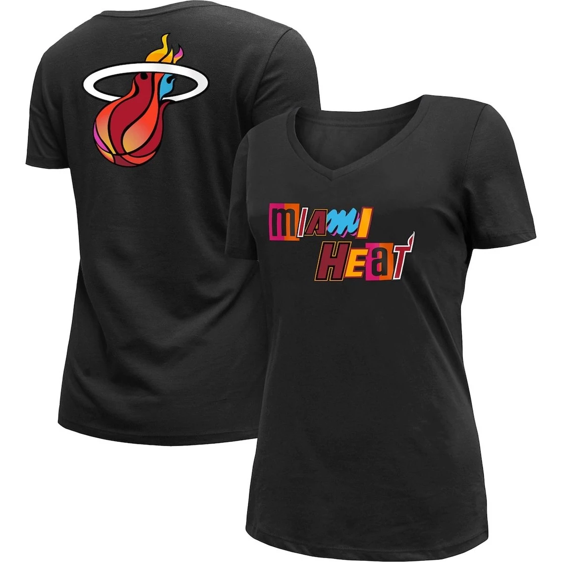 - This Miami Heat 2022/23 City Edition V-Neck T-Shirt from New Era is exactly what you’ve been looking for to brighten up your wardrobe. This super soft piece will keep you comfortable anywhere you go, and the bold team graphics will make no one question where your allegiance lies. Add this awesome gear to your Miami Heat collection today.