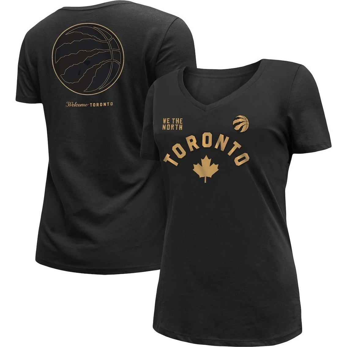 - This Toronto Raptors 2022/23 City Edition V-Neck T-Shirt from New Era is exactly what you’ve been looking for to brighten up your wardrobe. This super soft piece will keep you comfortable anywhere you go, and the bold team graphics will make no one question where your allegiance lies. Add this awesome gear to your Toronto Raptors collection today.