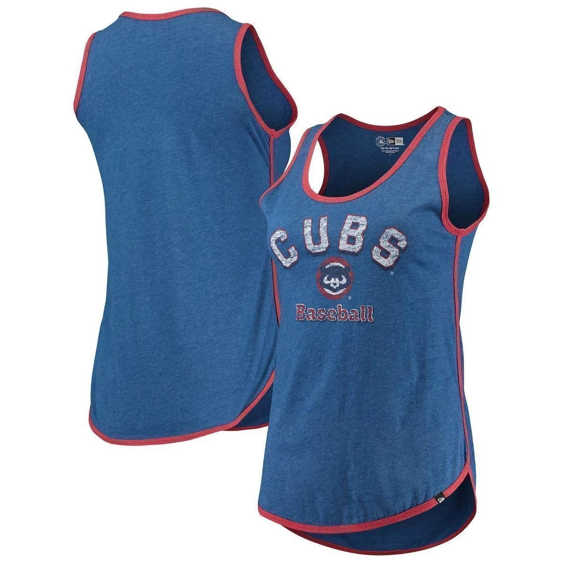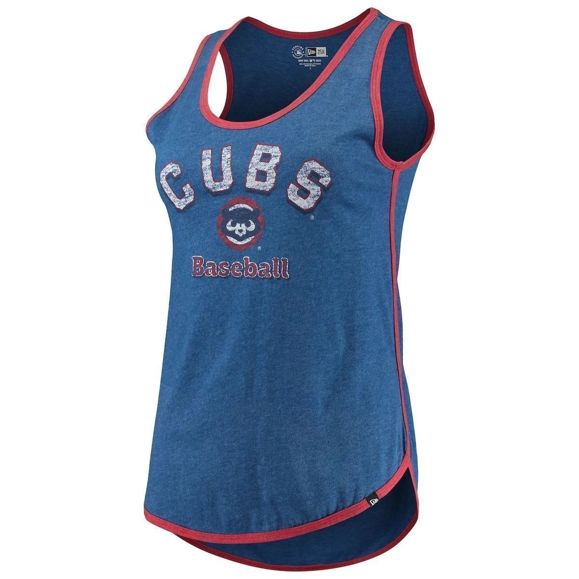 - Grab a piece you can flaunt on sunny Chicago Cubs game days with this New Era Binding tank top. It offers a rounded hem for added coverage in the back as well as a dual-blend fabric that brings long-lasting comfort. While the vintage-inspired Chicago Cubs graphics enhance your spirit, the scoop neck allows you to accessorize without worry.