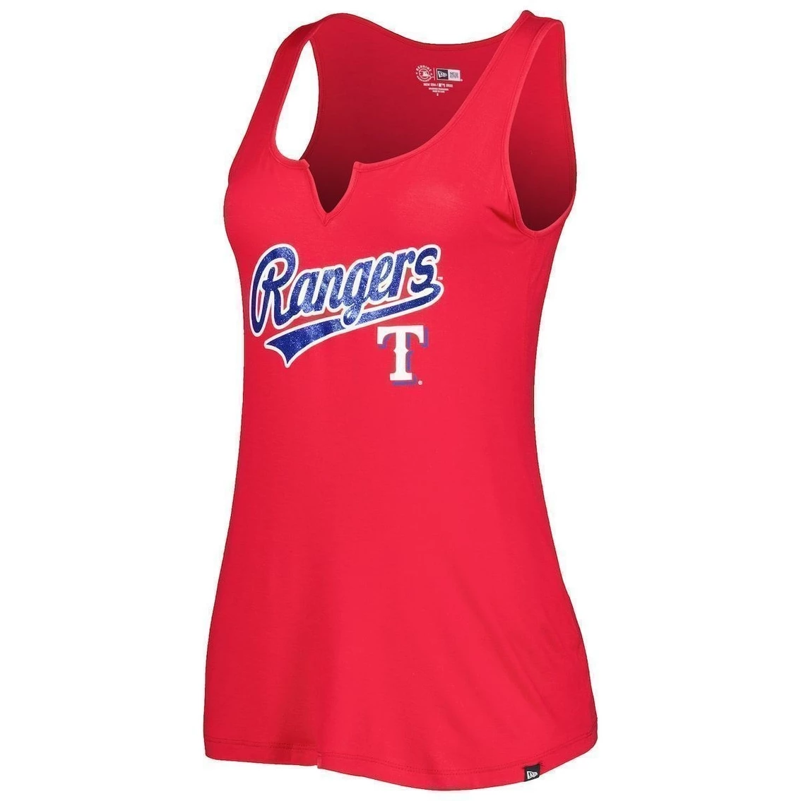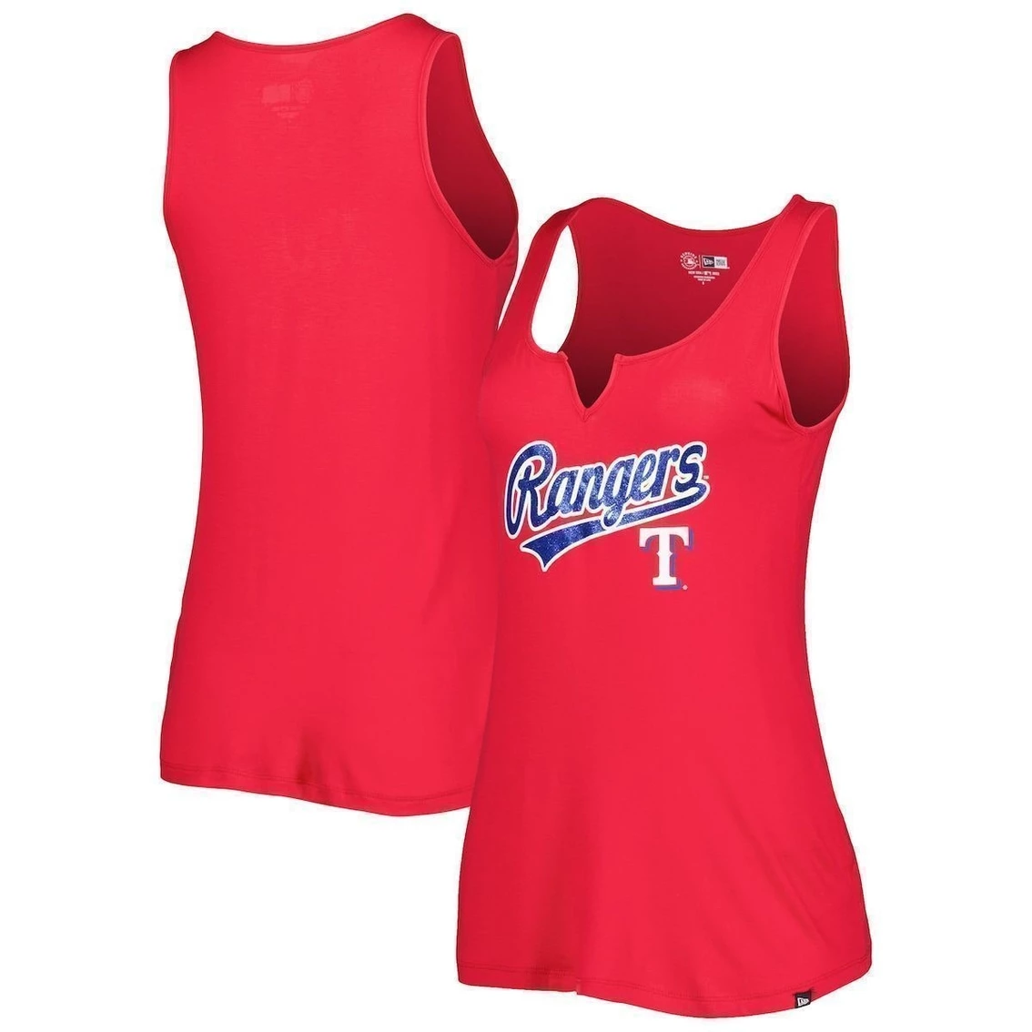 - When the summer heat ramps up, keep your Texas Rangers fandom strong with this Notch Neck tank top from New Era. This sleeveless top is a great casual option for taking in the ballgame, or showing off your blend of comfort and style around town. Bold graphics put your devotion front and center, so there’s no doubt that you’re a die-hard Texas Rangers fan.