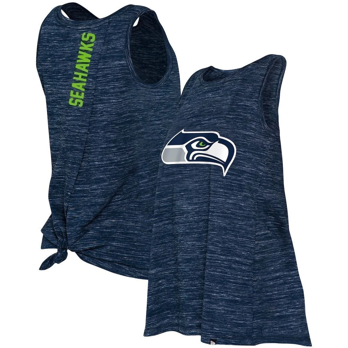 Easy, breezy and comfortable, this Seattle Seahawks Back-Knot tank from New Era exceeds all match day expectations. The sleeveless design promotes breathability, keeping you fresh on the pitch or in the stands. Plus, the trendy space-dye fabric enhances the stylish Seattle Seahawks graphics for a chic top. ImportedBrand: New EraOfficially licensedCrew neckTagless CollarBack knot tieMachine wash with garment inside out, tumble dry lowMaterial: 93% Cotton/7% PolyesterSleevelessSpace-dye fabricScreen print graphics