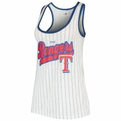 - If you want a classic baseball design on a modern style then this Texas Rangers tank top from New Era is the perfect option for you. The team logo sitting on top of the pinstripe design resembles an iconic jersey that fellow fans will appreciate. A racerback allows for increased movement so you can stay comfortable whether you’re throwing the baseball around in the back yard or cheering on the Texas Rangers at a game.