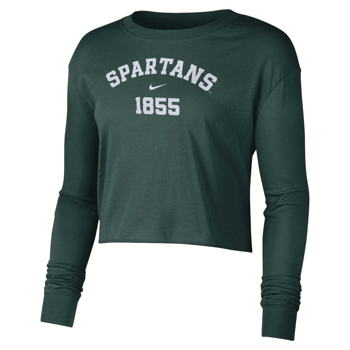- Grab a tee that makes you feel as good as watching your Michigan State Spartans with this Nike Est. cropped T-shirt. Soft cotton fabric and an oversized fit allow for easy movements and comfort. Bold Michigan State Spartans graphics complete this top for a trendy piece of fan gear.