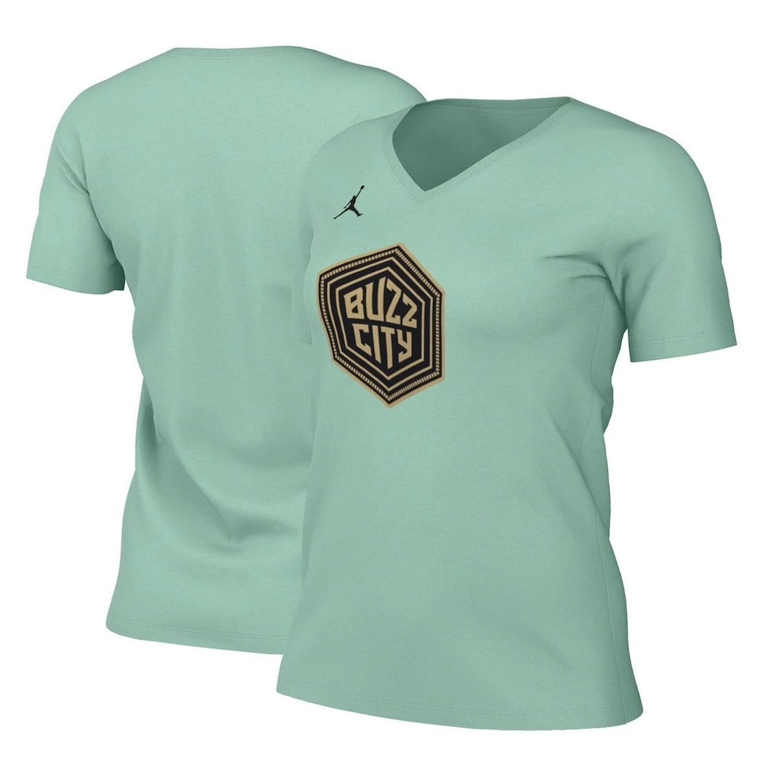 - This Charlotte Hornets 2022/23 City Edition Essential V-Neck T-Shirt from Nike is exactly what you’ve been looking for to brighten up your wardrobe. This super soft piece will keep you comfortable anywhere you go, and the bold team graphics will make no one question where your allegiance lies. Add this awesome gear to your Charlotte Hornets collection today.