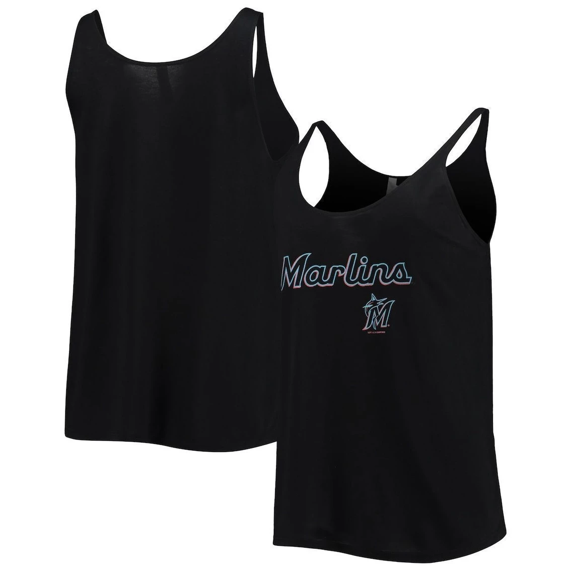 - On days when the heat rises high, keep cool in this Slouchy tank top from Soft as a Grape. It features Miami Marlins graphics printed on a blend of soft, lightweight fabrics. The scoop neck also gives this Miami Marlins shirt a relaxed fit.