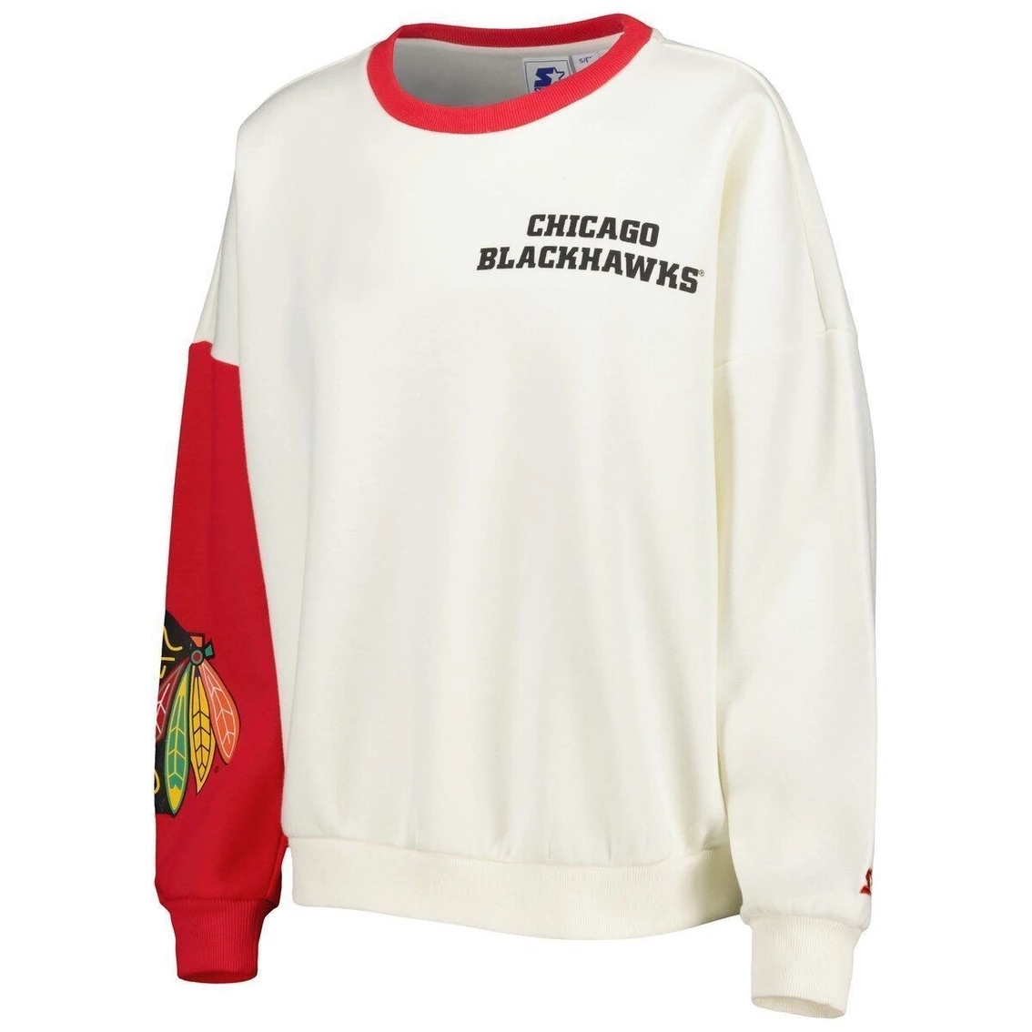 - Boost your collection of Chicago Blackhawks apparel with this Interception pullover sweatshirt from Starter. This stylish top features team graphics on the chest and a colorful right sleeve with graphics, making it perfect for showing off your unwavering fandom. The midweight design and toasty fleece lining help keep you warm and comfortable as you cheer on the Chicago Blackhawks.