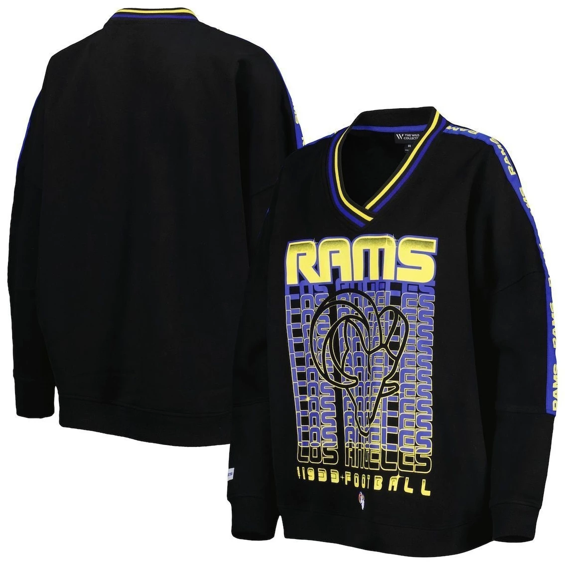 - Add vintage gear to your Los Angeles Rams collection with this V-neck sweatshirt from The Wild Collective. A midweight design stifles chilly temperatures so you can be warm and comfortable. Distinct Los Angeles Rams graphics give this pullover a throwback feel.
