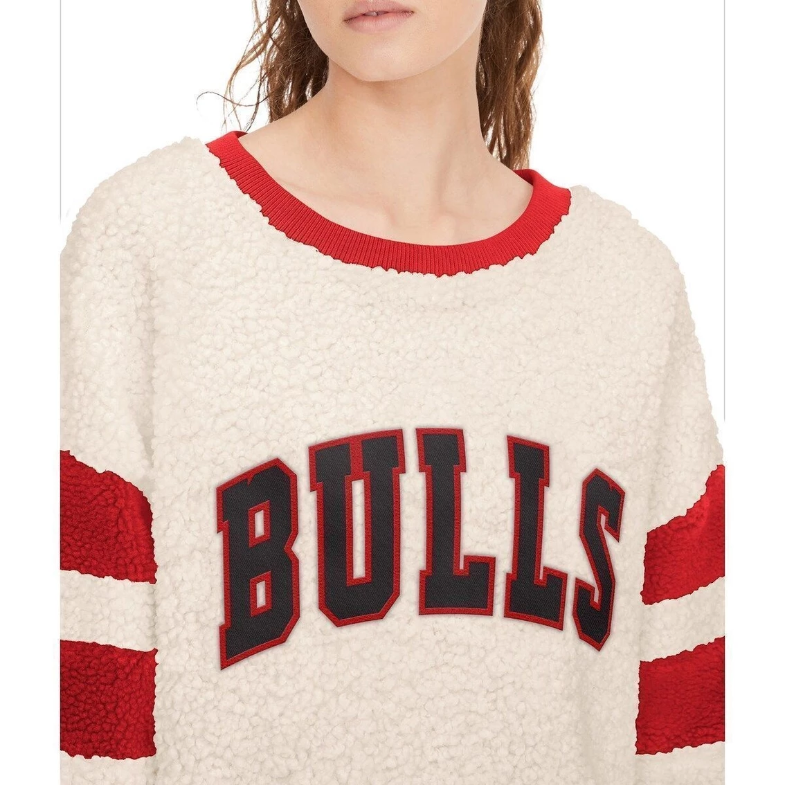 - If you want to stay warm while cheering on your Chicago Bulls, then this Mindy Sherpa Pullover Sweatshirt from Tommy Jeans is just what you need. It’s soft material and oversized fit makes for a comfortable and stylish look whether you are out and about, or just lounging at home. Plus, the printed Chicago Bulls graphics ensures your team loyalty is present at all times.