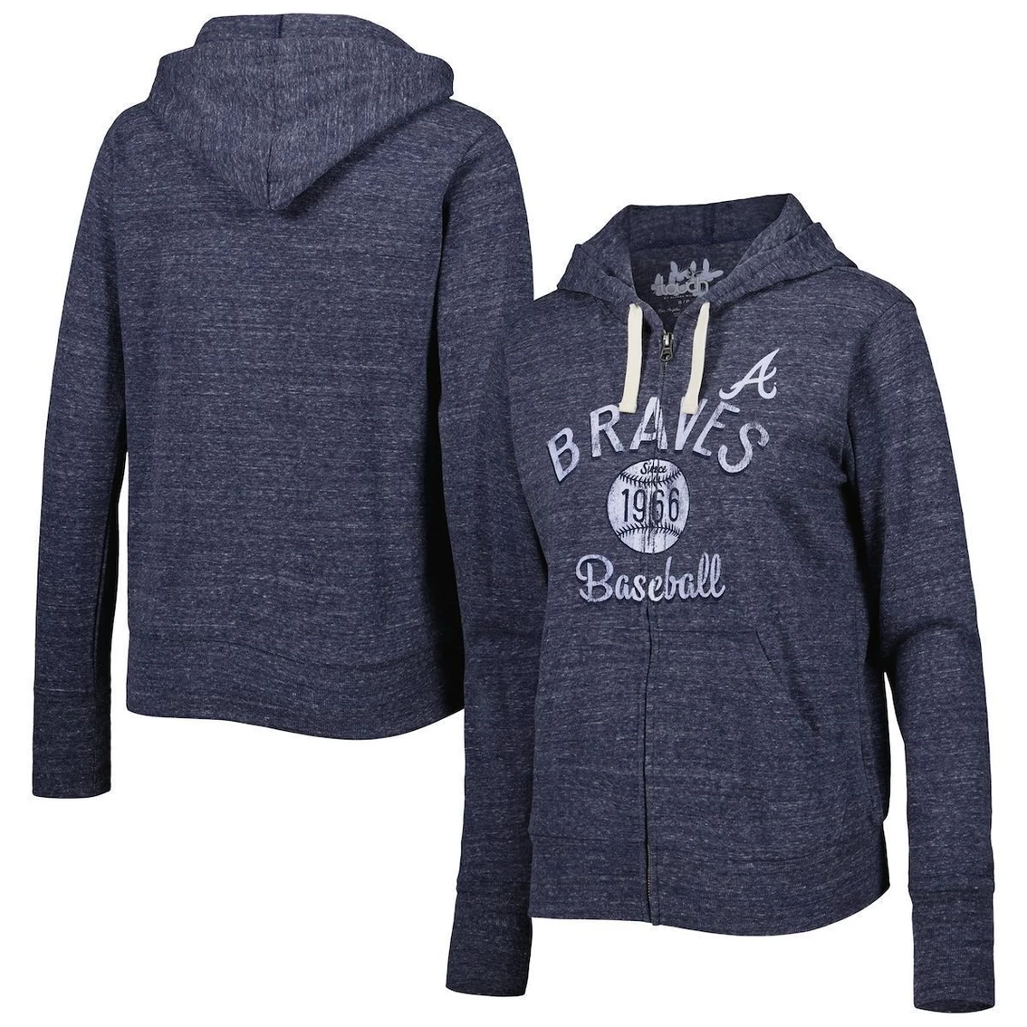 SKU: DSCO1162641724 Categories: Hoodies & Sweatshirts, Tops, Women's Clothing Tags: Clothing & Accessories, Hoodies & Sweatshirts, Touch, Women's Touch Navy Atlanta Braves Training Camp Tri-Blend Full-Zip Hoodie