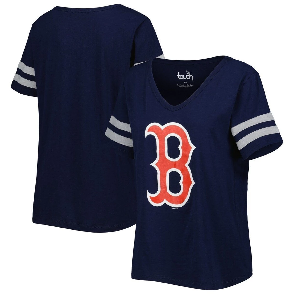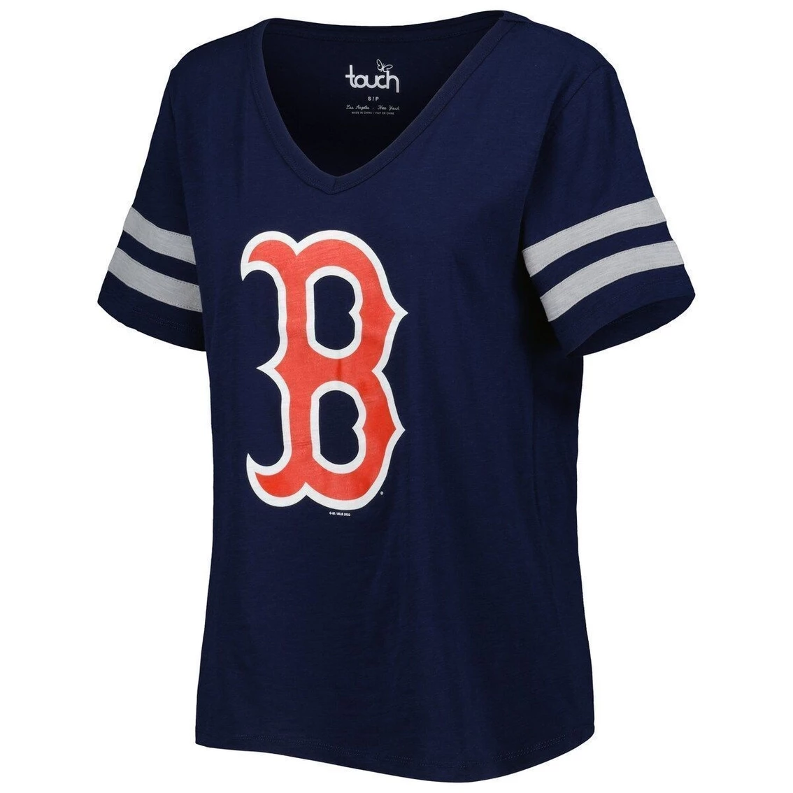- Boldly rep your Boston Red Sox with pride in this Touch Triple Play V-neck T-shirt. Soft fabric offers a comfy feel, while the unmistakable Boston Red Sox graphics make it easy to see who you root for when it’s go time. The sewn-on stripes offer a subtle contrast against this solid color tee, giving you the perfect finish to any game day ensemble.