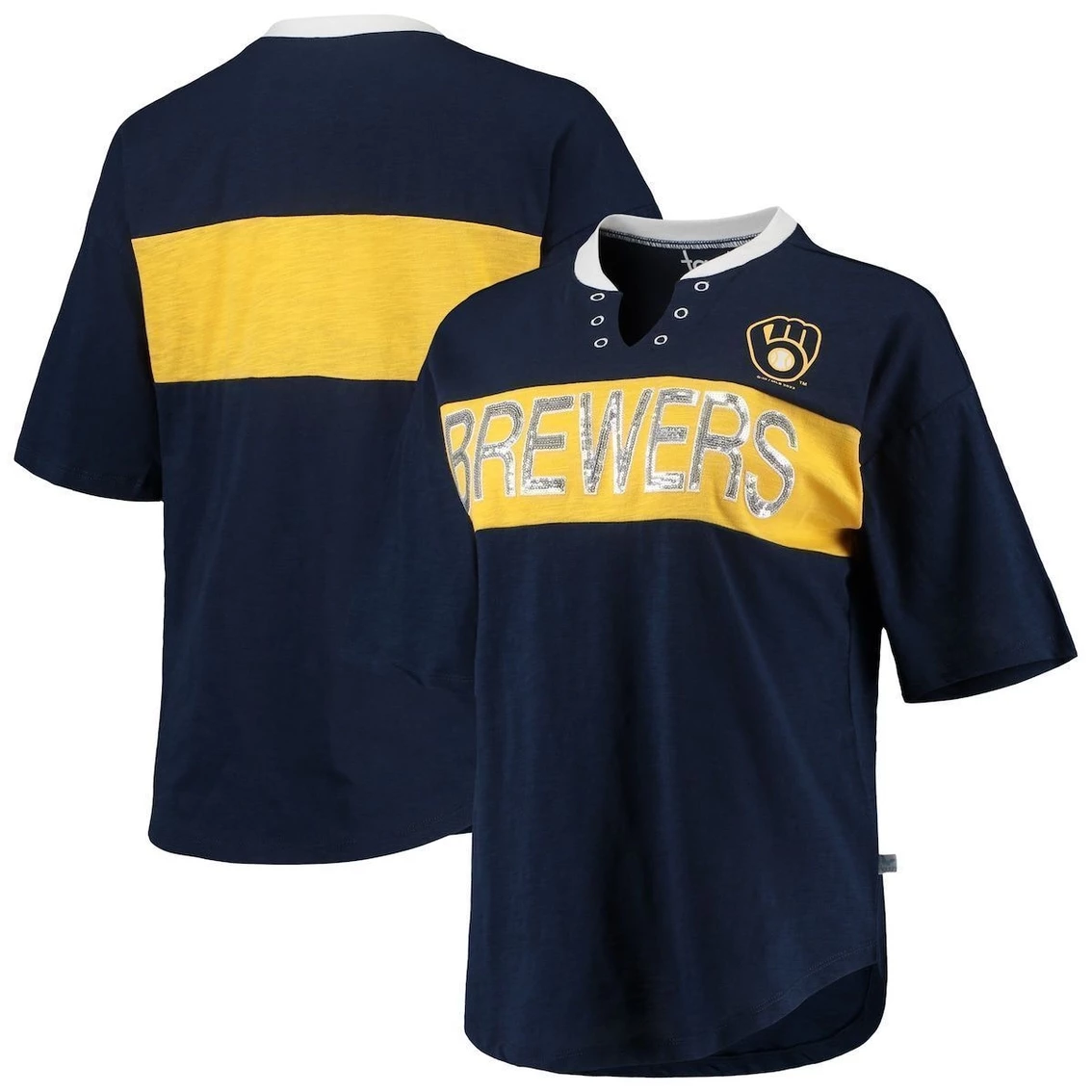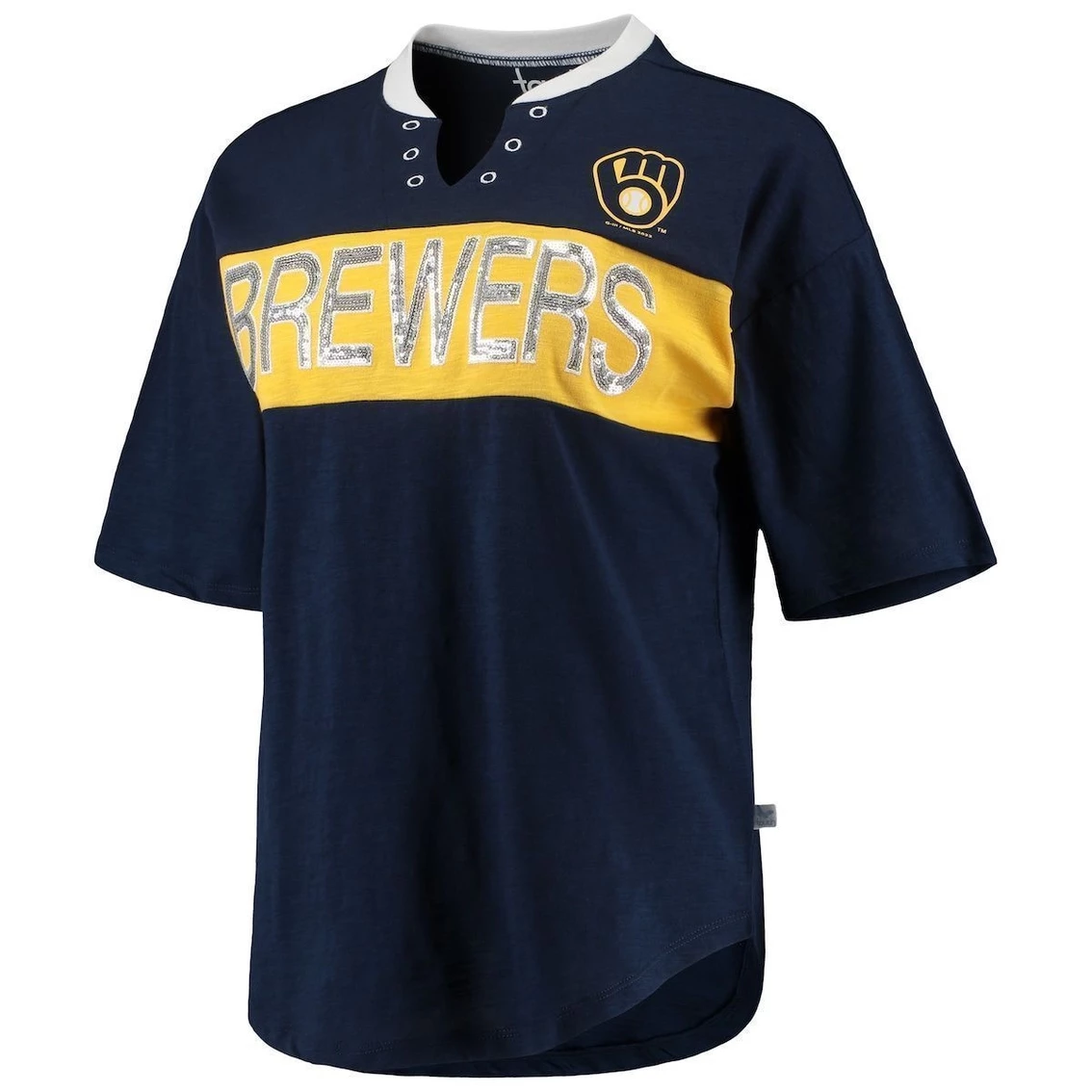 - Deepen your status as a true Milwaukee Brewers fan by sporting this Lead Off notch neck T-shirt from Touch. While the dual-blend fabric brings long-lasting softness, the rounded droptail hem offers extra coverage. Best of all, the glimmering Milwaukee Brewers graphics and unique notch neck add a touch of chic flair to your game day getup.