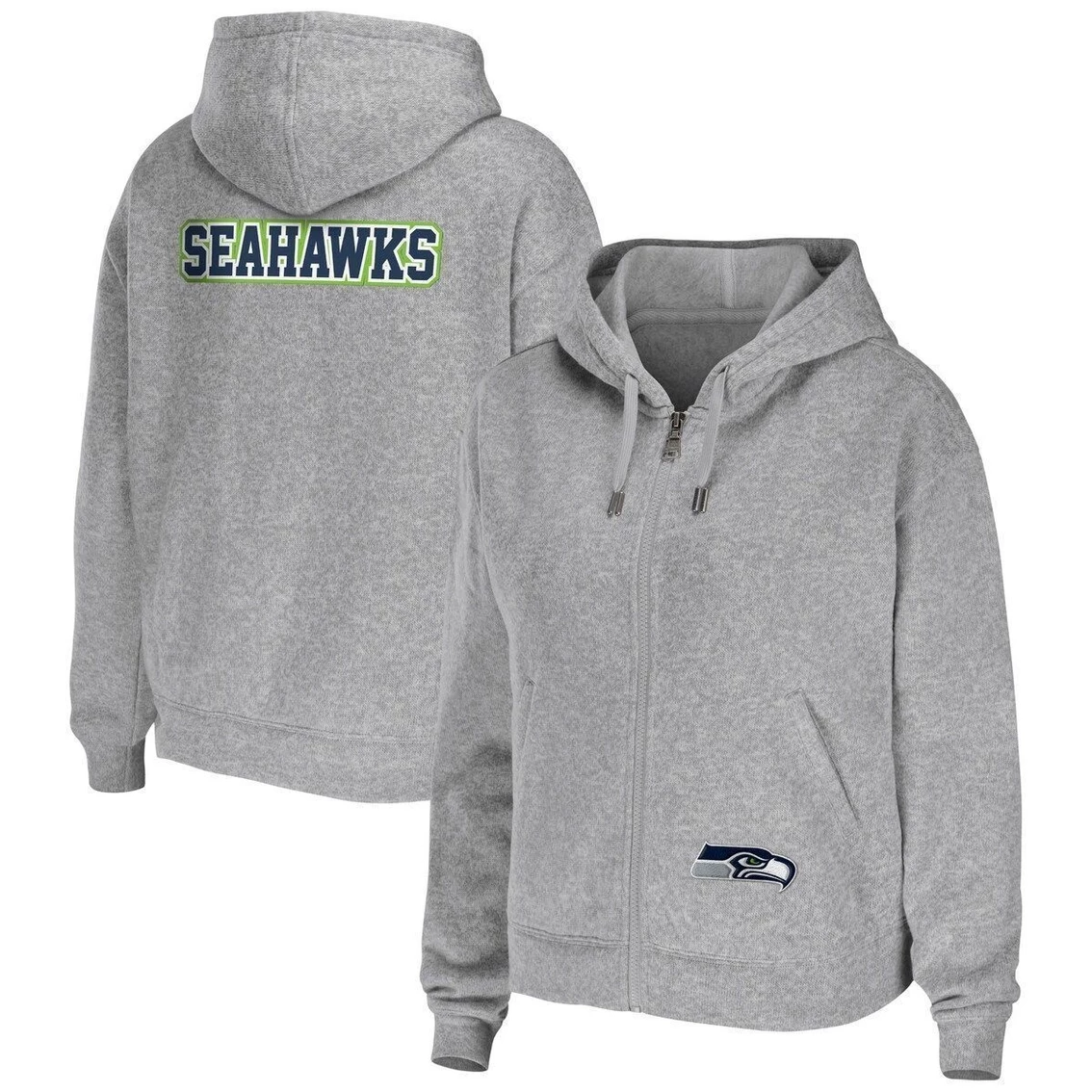 - Warmly put your Seattle Seahawks spirit on display with this full-zip hoodie from WEAR by Erin Andrews. Subtle yet striking Seattle Seahawks graphics on the front and back make for a classic look. Plus, the comfortable midweight design and toasty hand pockets help you combat the cold.