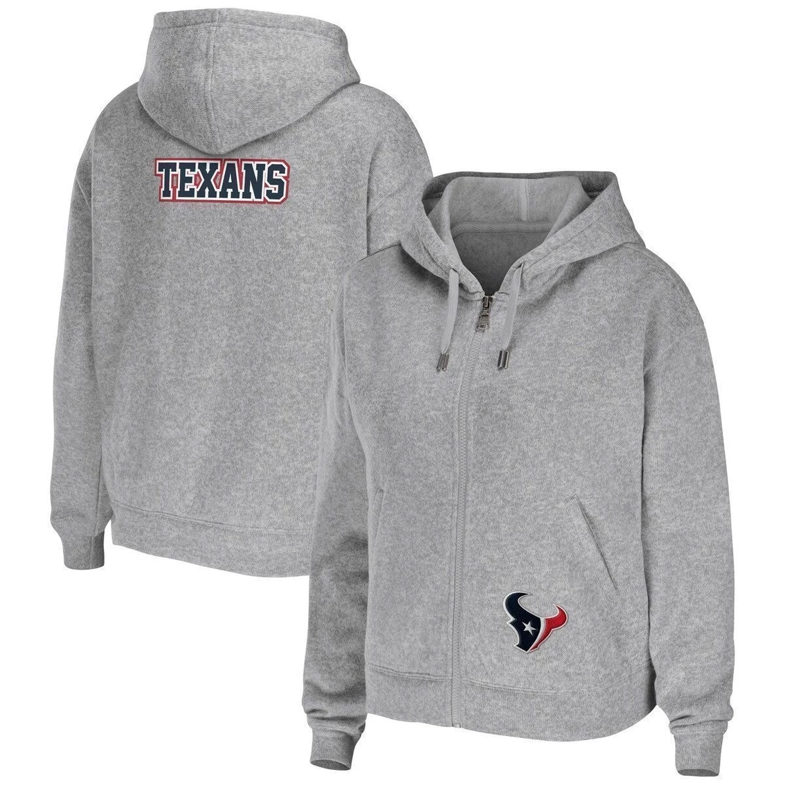 - Warmly put your Houston Texans spirit on display with this full-zip hoodie from WEAR by Erin Andrews. Subtle yet striking Houston Texans graphics on the front and back make for a classic look. Plus, the comfortable midweight design and toasty hand pockets help you combat the cold.