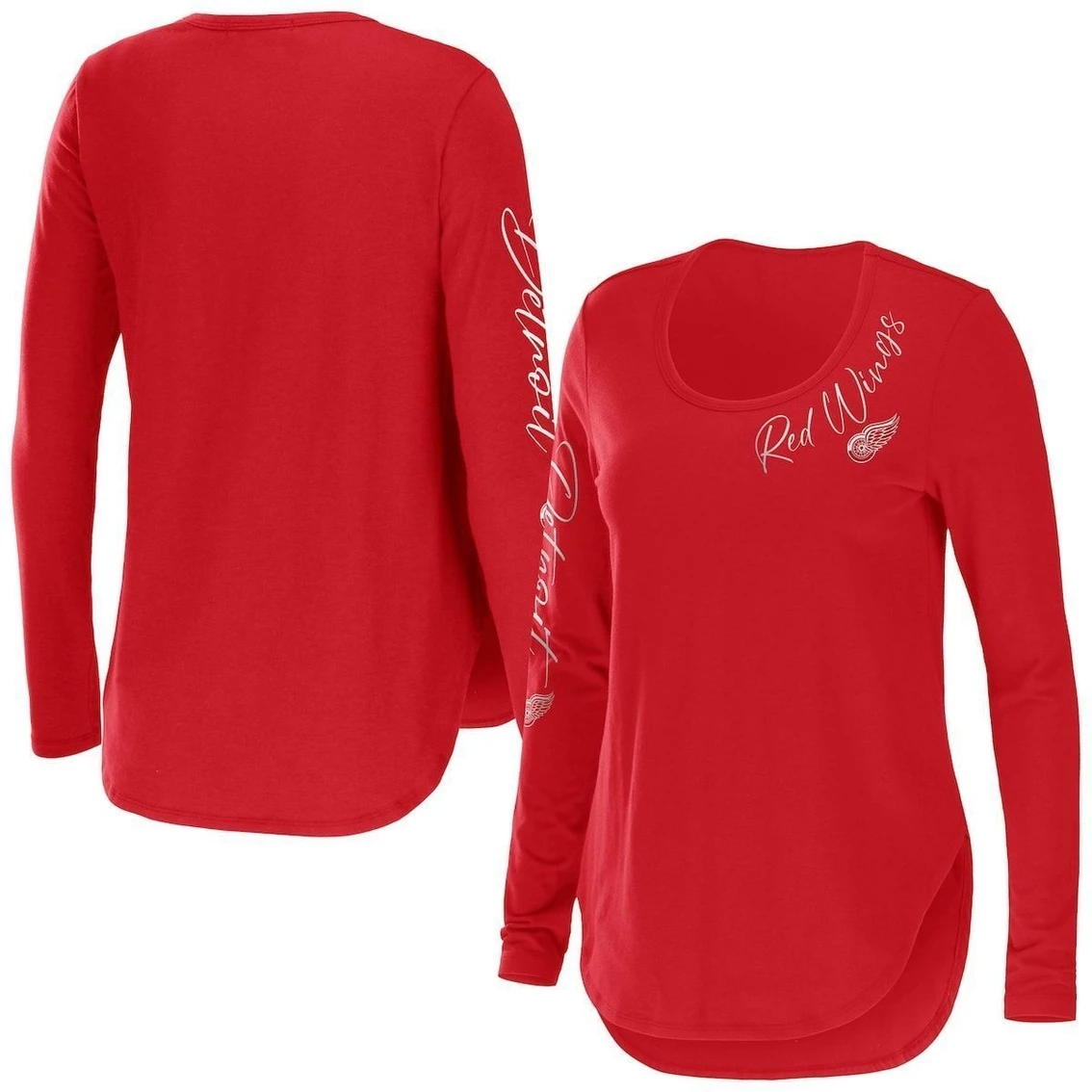 - Go for something out of the ordinary with a charming Detroit Red Wings T-shirt from WEAR by Erin Andrews that offers a cute take on your fandom. It features a flattering scoop neckline and blended fabric for a comfy fit and feel. In addition, printed graphics complete this top, making it easy to pair it with your favorite Detroit Red Wings hat or bottoms for a doubly spirited look.