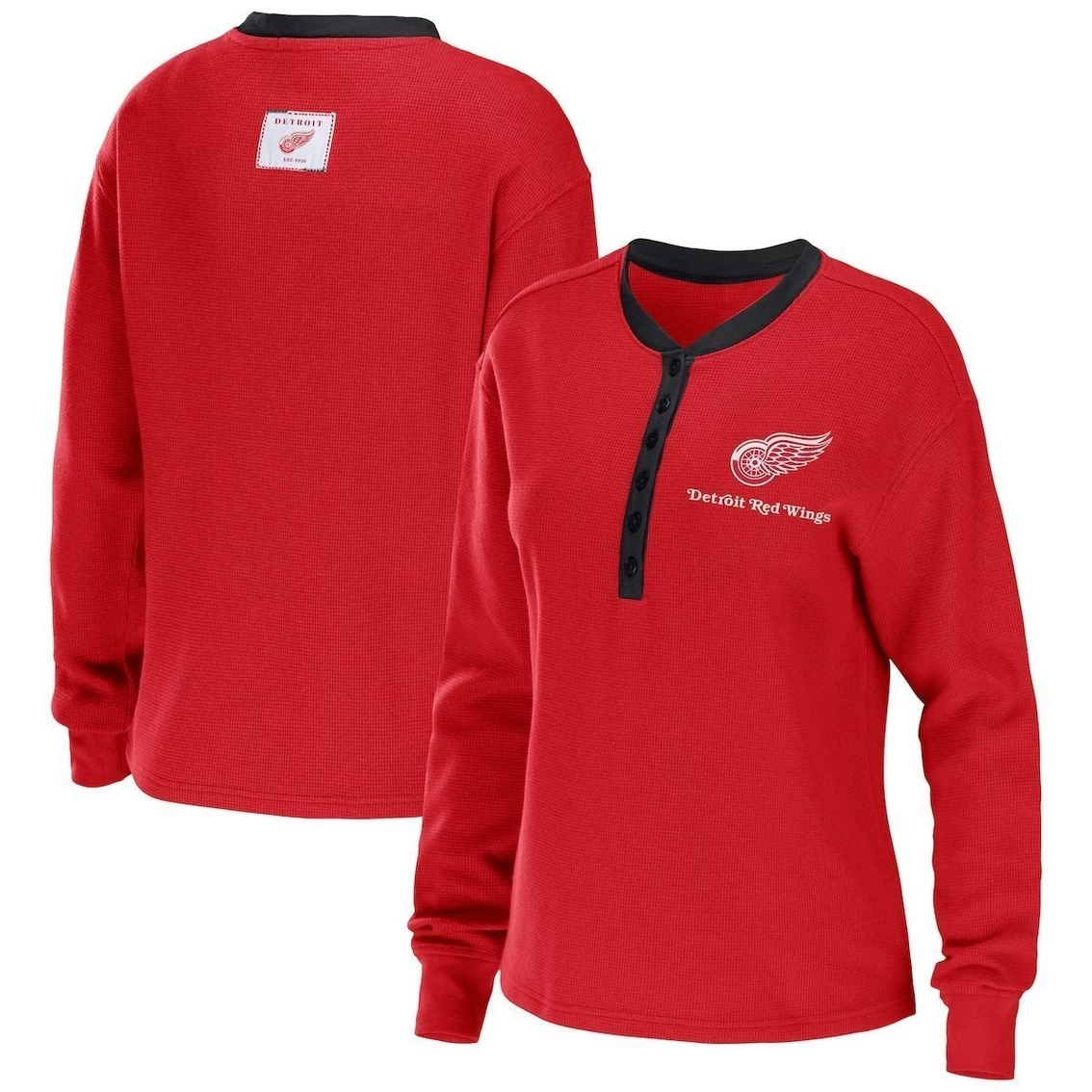 - Leave no doubt you’re a devout Detroit Red Wings fan with this Henley T-shirt from WEAR by Erin Andrews. The waffle-knit design adds a stylish depth to the unmistakable Detroit Red Wings colors and graphics. In addition, the dropped shoulders offer extra room for ease of movement.