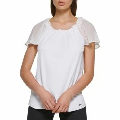 Best Pirce β€οΈ Calvin Klein Chiffon Ruffle Sleeveless Top π